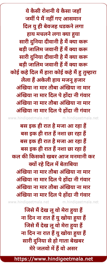 Lyrics of Ankhiya Na Mar (Remix) - ये कैसी रोशनी ये कैसा जहाँ
