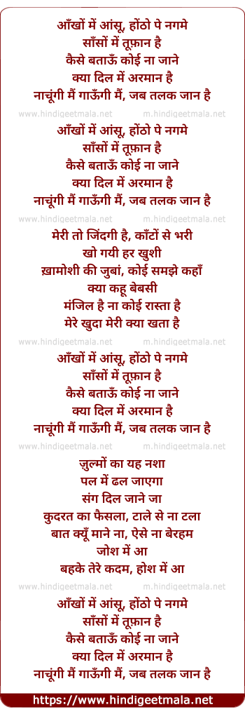Lyrics of Ankho Me Aansu Hotho Pe Nagme - आँखों में आंसू, होंठो पे नगमे