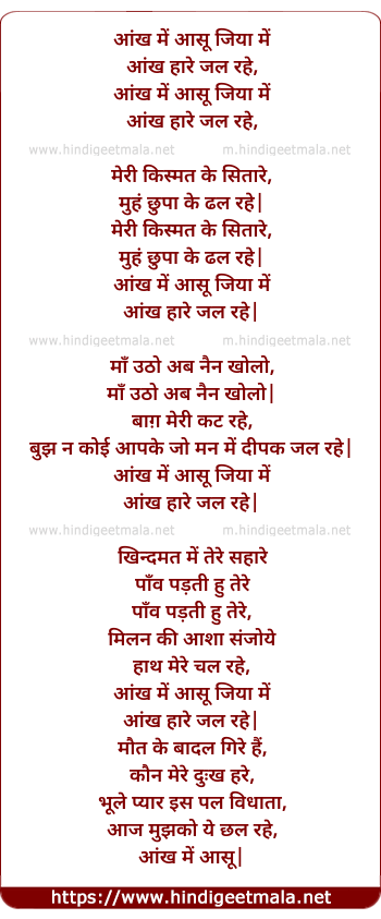 Poetic Translation - Lyrics of Ankho Me Aansu Jiya Mai Sans