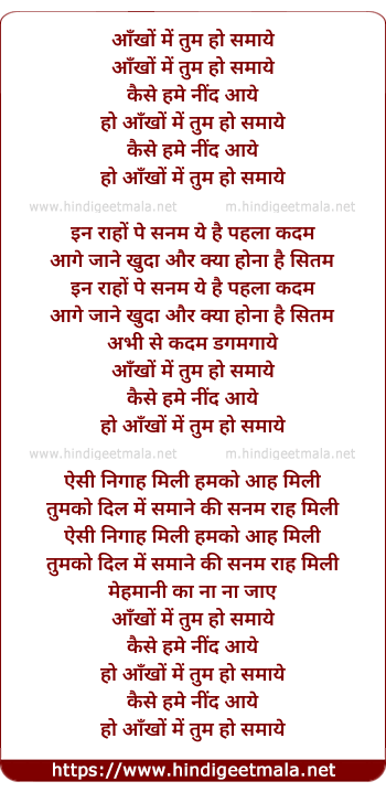 Lyrics of Ankho Me Tum Ho Samaye - आँखों में तुम हो समाये