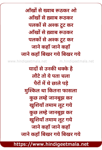Lyrics of Ankho Se Khwab Rooth Kar (Remix) - आँखों से ख्वाब रूठकर ओ