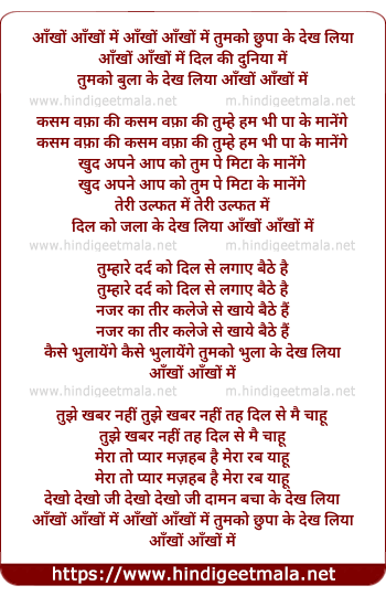 Lyrics of Ankhon Ankhon Me, Tumko Chupa Ke Dekh Liya - आँखों आँखों में आँखों आँखों में तुमको छुपा के देख लिया