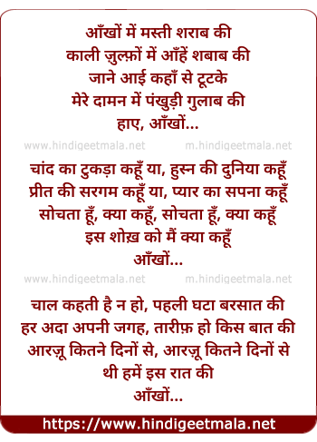 Lyrics of Ankhon Mein Masti Sharab Ki - आँखों में मस्ती शराब की