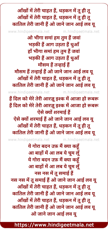 aankho me teri chahat hai, dhadkan me tu hi tu