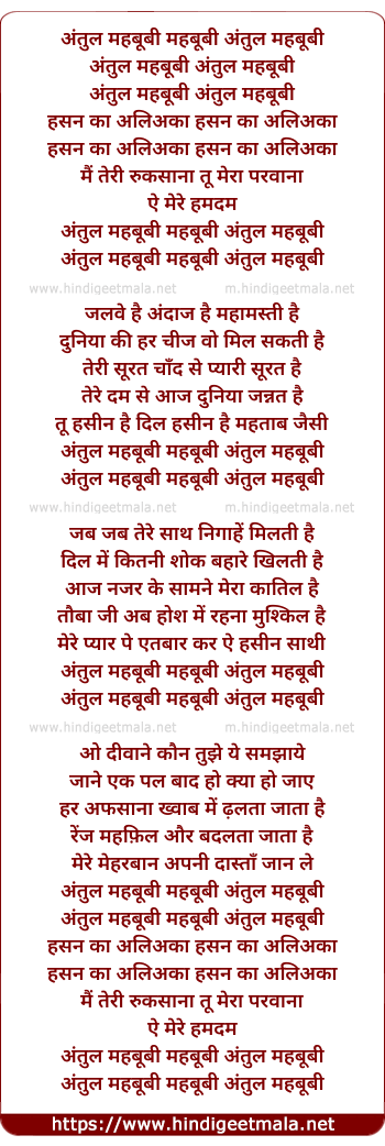 Lyrics of Antul Mehbubi Antul Mehbubi - अंतुल महबूबी अंतुल महबूबी