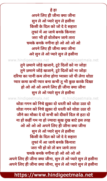 Lyrics of Apane Liye Hi Jina Kya Jina - अपने लिए ही जीना क्या जीना