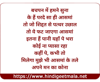 Lyrics of Apne Mann Ka Kona - अपने मन का कोना