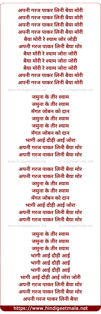 Lyrics of Apni Garaj Pakad Lini - अपनी गरज पाकर लिनी
