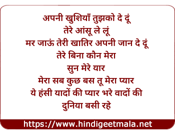 Lyrics of Apni Khushiya Tujhko De Du - अपनी खुशियाँ तुझको दे दूं