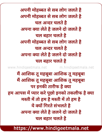 Lyrics of Apni Mohabbat Se Sab Log Jalte Hai - अपनी मोहब्बत से सब लोग जलते है