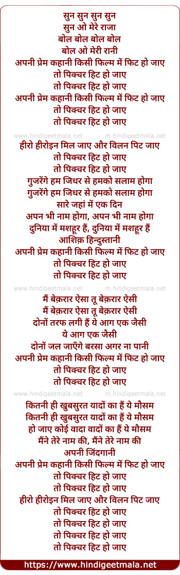 Lyrics of Apni Prem Kahani - अपनी प्रेम कहानी