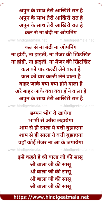 Lyrics of Apun Ke Sath - अपुन के साथ