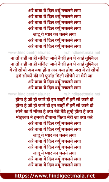 Lyrics of Are Baba Yeh Dil Kyun Machalne Laga - अरे बाबा ये दिल क्यूँ मचलने लगा
