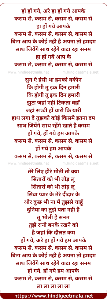Lyrics of Ho Gaye Hum Aapke Kasam Se - हों गये हम आपके कसम से