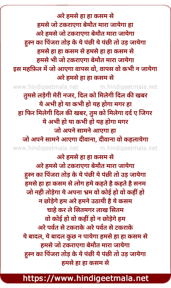 Lyrics of Are Hum Se Ha Ha Kasam Se