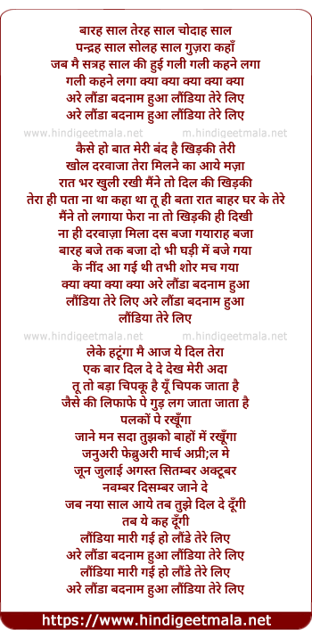 Lyrics of Are Launda Badnam Hua Laundiya Tere Liye - अरे लौंडा बदनाम हुआ लौंडिया तेरे लिए