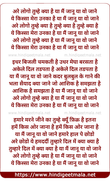 Lyrics of Are Logo Tumhe Kya Hai - अरे लोगो तुम्हे क्या है
