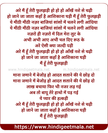 Lyrics of Are Mai Hu Teri Phuljhadi - अरे मैं हूँ तेरी फुलझड़ी