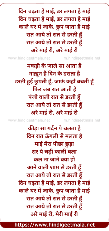 Lyrics of Raat Aaye To Raat Se Darti Hu - रात आये तो रात से डरती हूँ