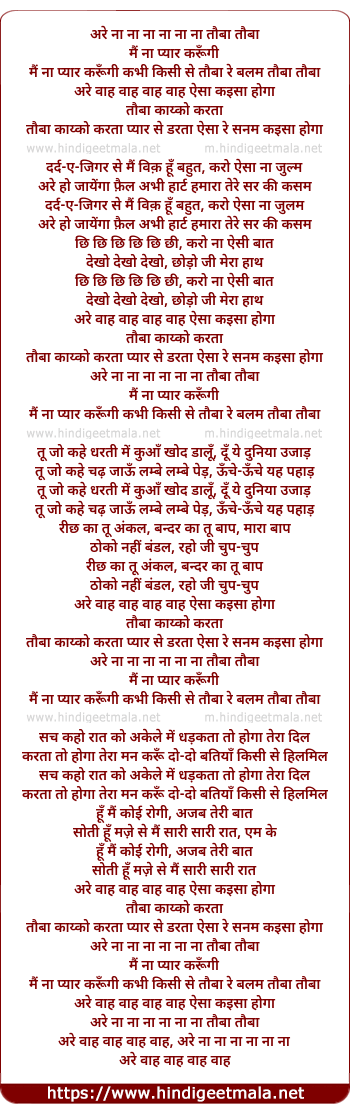 Lyrics of Are Na Na Na Na Na Na Toba Toba - अरे ना ना ना ना ना ना तौबा तौबा