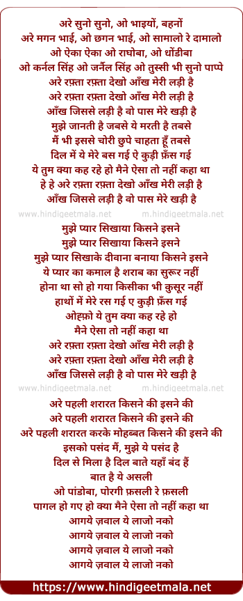 Lyrics of Are Raftaa Raftaa Dekho Aankh Meri Ladi Hai - अरे रफ़्ता रफ़्ता देखो आँख मेरी लड़ी है