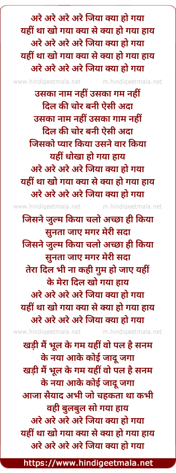 Lyrics of Are Are Are Jiya Kya Ho Gaya - अरे अरे अरे अरे जिया क्या हो गया
