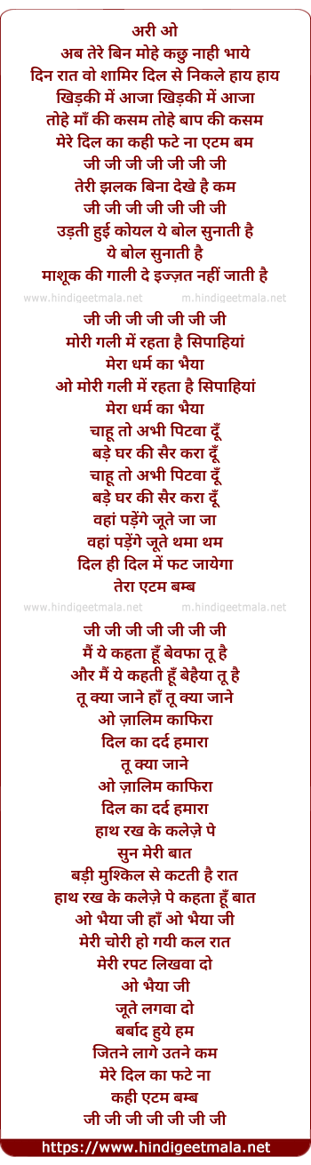 Lyrics of Ari O Ab Tere Bin - अरी ओ