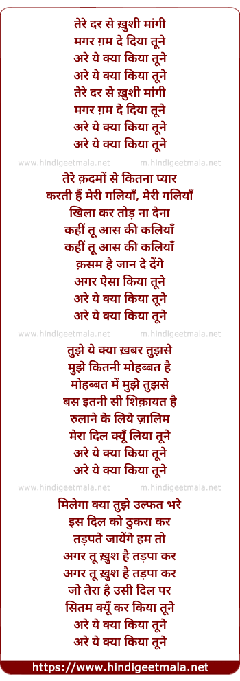 Lyrics of Arre Ye Kya Kiya Hai Tune - अरे ये क्या किया है तूने