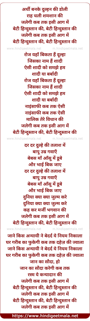 Lyrics of Arthi Banke Dulhan Ki Doli - अर्थी बनके दुल्हन की डोली