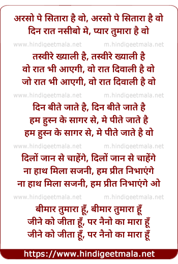 Lyrics of Arsho Pe Sitara Hai - अरसो पे सितारा है