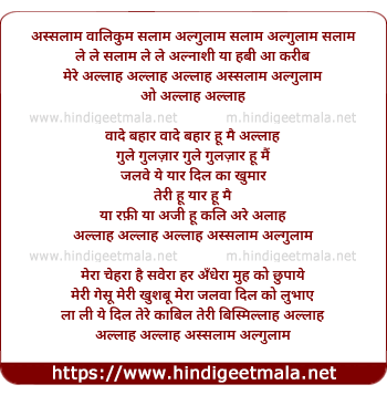 Lyrics of Assalam Alaikum - अस्सलाम वालिकुम सलाम अल्गुलाम सलाम अल्गुलाम सलाम