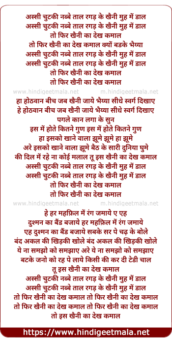 assi chutki nabbe taal ragad ke khaini muh me daal