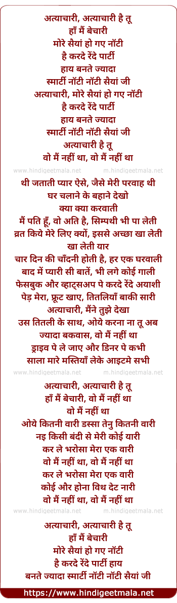 Lyrics of Atyachaari - अत्याचारी