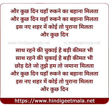 Lyrics of Aur Kuchh Din - और कुछ दिन यहाँ रुकने का बहाना मिलता