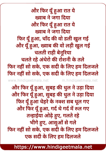Lyrics of Aur Phir Yun Hua Raat Ye - और फिर यूँ हुआ रात ये