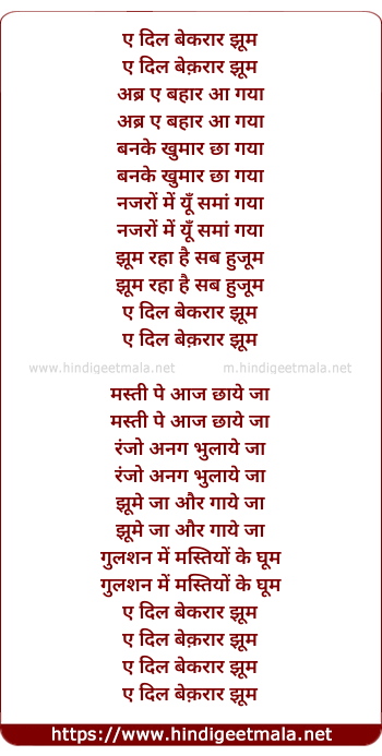 Lyrics of Aye Dil Bekarar Jhum - ए दिल बेकरार झूम