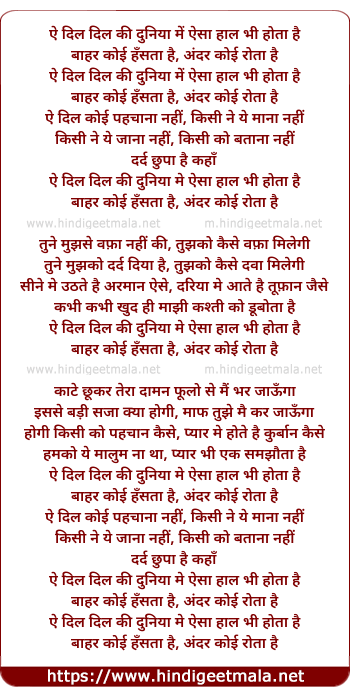 Lyrics of Ae Dil Dil Ki Duniya Me - ऐ दिल दिल की दुनिया में