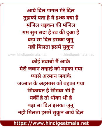Lyrics of Aye Dil Pagal Mere Dil (Male) - आये दिल पागल मेरे दिल (मेल)