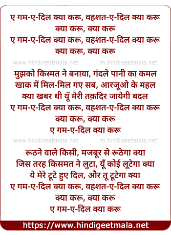 Lyrics of Aye Gham-E-Dil Kya Karu (By Asha Bhosle) - ए गम-ए-दिल क्या करूँ
