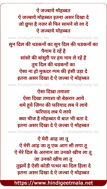 Lyrics of Ae Jazbaye Mohabbat Itna Asar Dikha De - ऐ जज्बाये मोहब्बत इतना असर दिखा दे