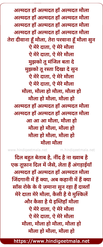 Lyrics of Aye Mere Data Aye Mere Maula - ऐ मेरे दाता ऐ मेरे मौला