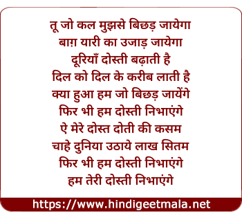 Lyrics of Aye Mere Dost Dosti Ki Kasam - ऐ मेरे दोस्त दोस्ती की कसम
