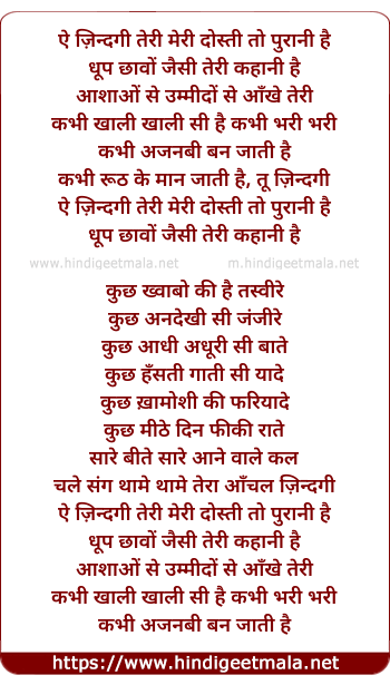 Lyrics of Aye Zindagi (Chalk N Duster) - ऐ ज़िन्दगी तेरी मेरी दोस्ती तो पुरानी है