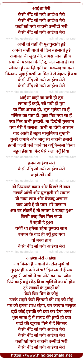 Lyrics of Ayesha Meri (Repeat) - आईशा मेरी