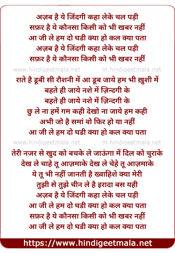 Lyrics of Azab Hai Ye Zindagi - अज़ब है ये जिंदगी