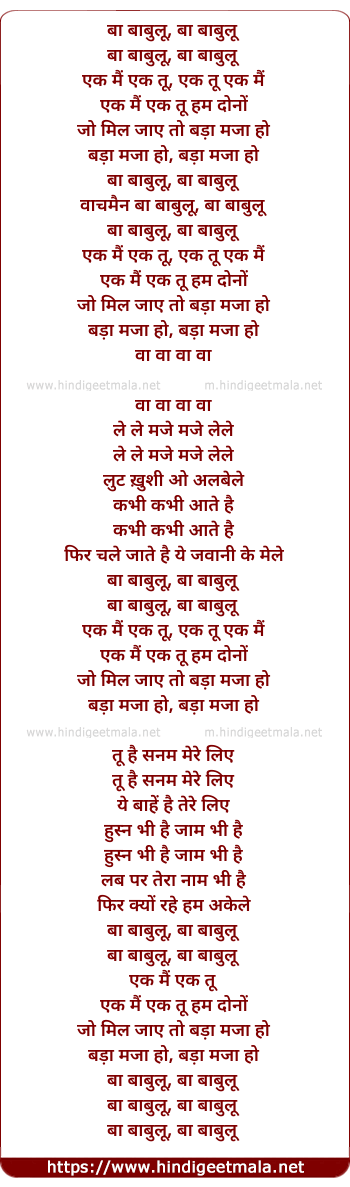 Lyrics of Ba Babulu Ba Babulu - बा बाबुलू बा बाबुलू
