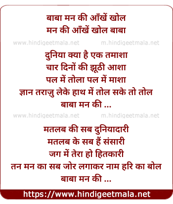 Poetic Translation - Lyrics of Baabaa Man Ki Aankhe Khol - बाबा मन की आँखें खोल