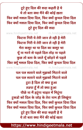 Lyrics of Tute Huye Dil Ki Sada - टूटे हुए दिल की सदा