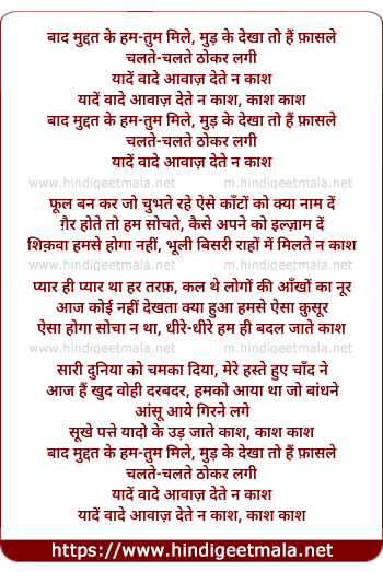 Lyrics of Baad Muddat Ke Hum Tum Mile - बाद मुद्दत के हम-तुम मिले