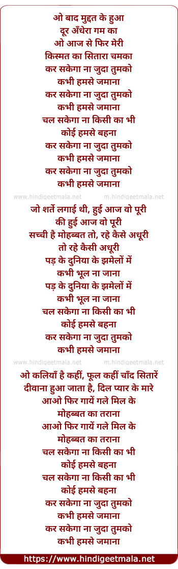 Lyrics of Bad Muddat Ke, Kar Sakega Na Juda Hamako - बाद मुद्दत के, कर सकेगा ना जुदा हमको